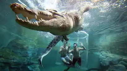 First, head to Darwin Crocodile Park, home to the only place in the world where you can dive and swim with saltwater crocodiles up to seven meters long. It's affectionately called the "Cage of Death." Here, tourists can get up close and personal with the world's largest crocodiles, a true movie experience. Experience the adrenaline rush and the near-death experience.