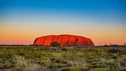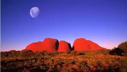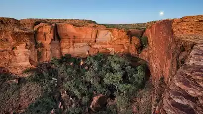 After breakfast, we'll depart for Kings Canyon National Park (approximately 3 hours). This vast canyon, also known as the Valley of the Kings, is a spectacular sight in Australia, plunging 270 meters below the surface. Unlike typical canyons, the rock formations in Kings Canyon range in color from milky white to deep purple. An 8-kilometer-wide rock ridge juts out from the flat desert of central Australia. The ridge's center has been split by tectonic shifts, creating a crimson red hue and knife-like shapes. This remarkable feature has earned Kings Canyon its nickname, the "Grand Canyon of Australia."