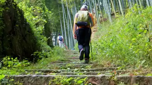 Walking along the winding path, you will reach the archway of Renjiaxi Ancient Road, where you will be overwhelmed by the weight of history. The initial stage is a stone-paved stone step trail. Along the way, you can see trees, bamboo forests, reservoirs, and in June, you can also see delicious bayberries.