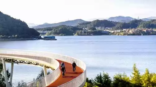 The first stop was a thousand acres of rare water forest in China, featuring pond cypress trees introduced from the Amazon in South America in the 1960s. We savored the lakeside breeze at Qingshan Lake, stopping to take in the stunning scenery and snap a beautiful photo. Then, we began our lakeside bike ride, enjoying the breathtakingly beautiful greenway. Duckweed drifted across the lake, creating a blend of vastness and serenity, while the mountains were beautiful and elegant, creating a feeling of "the shadows of the mountains trembled majestically, the light of the azure ponds shimmered with life."