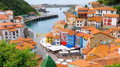Italy's Cinque Terre is well-known for its colorful houses and coastal scenery. Northern Spain also boasts a colorful town called Cudiero, a small fishing village nestled on the Atlantic Ocean. The buildings are painted in vibrant colors, each one custom-painted to the residents' tastes. The overall look, bathed in sunlight, is like a fairytale fishing village.