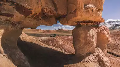 After breakfast, we departed and continued exploring the border scenery along the Torugat Border Highway. As our vehicle progressed, we arrived at the lesser-known Red Valley, a hidden gem first discovered by China-TravelNote. Located on the border with Kyrgyzstan, this breathtaking Danxia landform blends with snow-capped mountains and grasslands, weathering into a diverse array of shapes. There's "Skull Mountain," resembling a skull, "Hat Mountain," shaped like a magic hat, and various red weathered rocks. Off-road vehicles can navigate this terrain, taking you deep into the Danxia Valley, where you can gaze out from above and marvel at the wonders of nature.