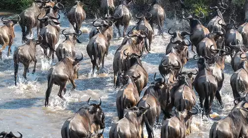 Full-day animal safari, get up early and drive to the Mara River. Many people think that wildebeest crossing the river only happens in Kenya, but in fact, it also happens in Tanzania!