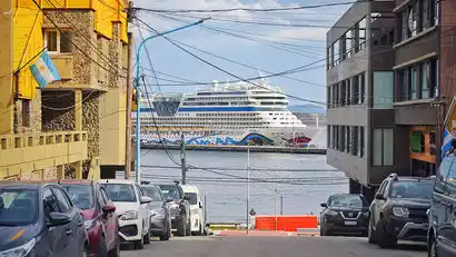 After lunch, we'll proceed to Ushuaia Port for boarding. Our expedition team and onboard staff will welcome you, followed by a brief safety briefing. Then, we'll enjoy a welcome dinner with the captain. Afterward, we'll relax and enjoy the evening scenery. Our cruise will pass through the Beagle Channel, home to a colony of Magellanic penguins, rock cormorants, and sea lions.