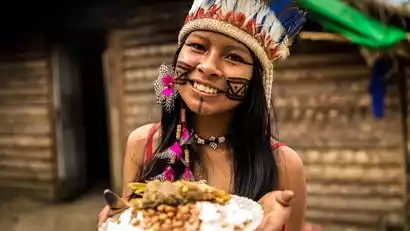 Enjoy a local buffet lunch at a floating restaurant and visit a floating Native American craft shop. Cross a winding wooden bridge through a lush forest for a natural experience. See the royal lotus flowers in the Devil's Swamp (if conditions permit and the water level is high; cancel if the water level is low). Watch Native American dances and take photos with them. Return to the pier for your flight to Rio de Janeiro.