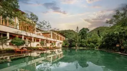 The elegant and beautiful Bailian Hot Springs flow quietly through the winding paths of the Bailian Group's fifth high-end wellness resort. The hotel skillfully integrates Guizhou's history and culture, ethnic minority characteristics, karst landforms, and the natural landscape of the Huangguoshu Scenic Area, while maintaining the classic Bailian style of unpretentious seclusion. Twenty-six unique hot spring pools, like sparkling pearls scattered amidst the lush greenery of a private garden, shimmer and radiate a dazzling light. Wander in this vibrant and tranquil paradise, enjoying a harmonious and beautiful atmosphere of harmony between man and nature and a leisurely holiday filled with health and joy.