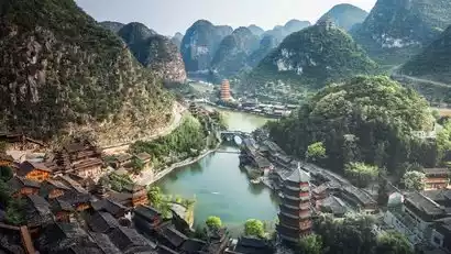 Hidden in the heart of southwest Guizhou, Fenglin Buyi boasts over 600 Buyi dwellings nestled against the backdrop of mountains and water. Strolling through the area, you'll be surrounded by peaks and water, where the breathtaking natural wonders blend with Buyi culture, creating a tranquil paradise far removed from the hustle and bustle of the world. At night, the vibrant lights illuminate the corridors and towers, blending beautifully with the lake, creating a vibrant and romantic atmosphere, reminiscent of the anime world of Spirited Away. Enjoy a variety of ethnic performances, including eight-tone singing, traditional Buyi opera, Buyi wedding parades, and rice bran dances, offering a comprehensive understanding of Buyi culture.