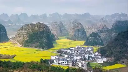 Every February and March, the blooming fields of rapeseed flowers herald the arrival of spring. Amidst these thousands of acres of rapeseed flowers lies an ancient Buyi village. Visit Xia Nahui Village, where thousand-year-old banyan trees frame an ancient bridge and elderly residents gather to chat. The countryside, the river, the people—all of this embodies true rural life.