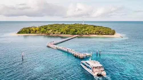 [Double-Decker Yacht to Green Island] (Approximately 3 hours, including lunch): Cruise for approximately 50 minutes to Green Island, a beautiful coral island surrounded by white sand. Coconut trees and palm trees stand tall and majestic, interwoven with vines, creating a lush, verdant landscape, like a green gem set against the azure sea. Relax on the beach, swim in the sea, stroll along the acacia wood paths in the island's forest, or take an optional helicopter ride for a bird's-eye view of the Great Barrier Reef or take a magical underwater walk. Here, you'll enter a vacation moment, relax, and savor the pure blend of sea, sky, and island.