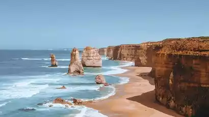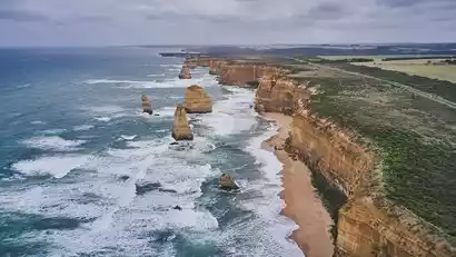 After breakfast, we'll board a bus for the famous Great Ocean Road (one-way). Known as Victoria's state treasure, the Great Ocean Road offers breathtaking coastal scenery. Along the way, tourists can admire tranquil coastlines, bustling surf beaches, charming seaside towns, lush eucalyptus rainforests, caves, and wind vents.