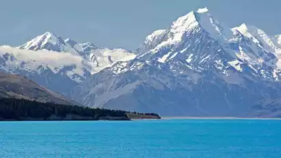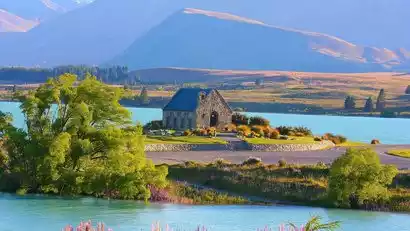 Afterwards, we'll drive to Tekapo. Admire the beauty of Lake Tekapo. From the windows of the famous Shepherd's Church and the altar of the Border Dog statue, tourists can enjoy spectacular views of mountains, snow-capped peaks, and the vast sky. From mid-November to mid-December, the lake is in bloom!