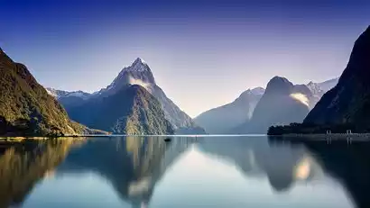 Milford Sound is a famous scenic spot on New Zealand's South Island, recognized as one of the Eight Wonders of the World. "Sound" means deep fjord. It's a deep valley carved by glacial water during the Ice Age. Surrounded by mountains, the deep glaciers are now submerged by the sea. The fjord is a scene of undulating peaks and majestic waterfalls, nestled among the peaks and granite cliffs. It's also a playground for seals, seagulls, and dolphins, but you'll need luck to see them! Milford Sound, covering 8,000 square kilometers, is a New Zealand national park. Its most captivating natural wonders are the glacially carved canyons. Two million years ago, massive glaciers carved deep valleys into the mountain sides. This is the fascinating Fiordland National Park and Heritage Area. A trip to New Zealand without visiting Milford Sound would be a profound regret.
