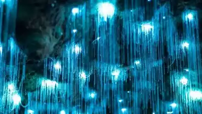 Go to Waitomo Glowworm Caves: Green light dots are dotted on the cave walls, layer upon layer. These green lights flicker on the dark water, doubling the light and shadow. This is a wonderful world belonging to the green elves.