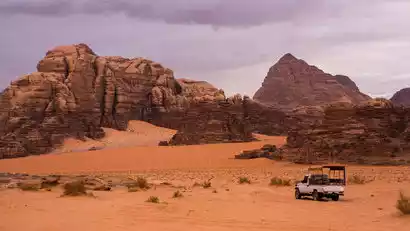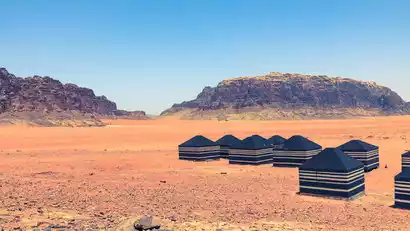 After breakfast, we'll drive to Wadi Rum, a renowned extraterrestrial landscape. As one of only 32 UNESCO World Heritage Sites, this stunning desert landscape is not only Jordan's, but also the world's. Its resemblance to otherworldly scenery has earned it the nickname "Valley of the Moon." The soft evening light casts a captivating rosy red across the desert, earning it the even more romantic, and tourist-favorite, name of "Rose Desert."