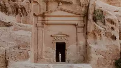 After breakfast this morning, we'll return to Petra. A UNESCO World Heritage site and one of the New Seven Wonders of the World, this enigmatic ancient city fascinates the world. Carved almost entirely out of rock, it's renowned for its vibrant colors. The landscape today is ever-changing, featuring sandy plateaus, Bedouin campsites, goat herds, and stone stairways. Your guided tour culminates at the Monastery, an impressive seven-story structure with an eight-meter-high doorway. While not as ornate as the Treasury, the sheer size of this building is awe-inspiring. It was reportedly used as a temple by Christians during the Byzantine period.