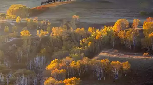 In the afternoon, we'll enter the Ulan Butong Grassland, enjoying the autumn scenery of rolling hills and meadows, vast forests, and herds of cattle, sheep, and horses. Upon arrival at the hotel, Mongolian women and men in their finest attire will offer dismounting wine, showcasing the warm hospitality of the grassland people.