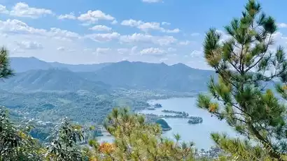 As we set foot on this ancient mountain path, every stone seemed to tell a story of vicissitudes. Though narrow, it bore the deep marks of time. The path was not steep, ascending gently, giving us ample time to savor the scenery along the way. From the worship pavilion, the panoramic view of Dongqian Lake was breathtaking, a truly refreshing experience. After a brief rest, we continued on to the western section of Baiji Ridge.