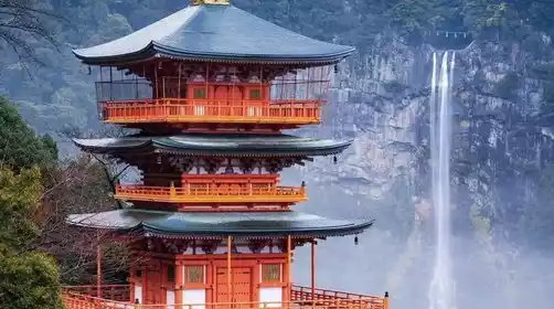 After breakfast, we'll head to another highlight of the Kumano Kodo Trail. From the Daimonzaka Kodo Trail, we'll hike to Nachi Taisha Shrine. This section (approximately 2 kilometers, 1.5 hours) is also one of the most beautiful sections of the Kumano Kodo Trail. The moss-covered stone steps lead through dense forest to Nachi Waterfall, Japan's tallest waterfall.