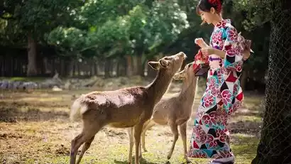 In the afternoon, we'll travel to Nara, home to the largest number of World Heritage Sites in Japan. It's worth slowing down and exploring the streets to experience the charm of this ancient capital. Nara Park, known as the "Royal Deer Park," is a delightful stroll. We'll also visit Todai-ji Temple, Kasuga Taisha Shrine, and Horyu-ji Temple, one of the world's oldest wooden structures, to experience the beauty of ancient temples blending humanity with nature. At sunset, we'll reach Mount Wakakusa and hike to the summit for a panoramic view of Nara Castle.