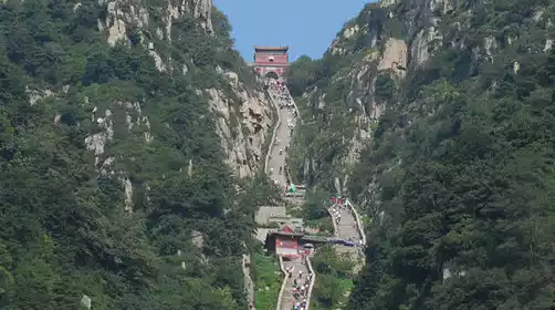 From Tianwai Village, take the scenic shuttle bus to Zhongtianmen. Then, walk past Yunbu Bridge, the Welcoming Pine, and the Eighteen Bends (a cable car is available for 100 yuan one-way, 200 yuan round-trip, at your own expense) to reach the Daiding Scenic Area. Visit Nantianmen and stroll along Tianjie Street. Then, visit the Bixia Temple, a model of alpine architecture. Explore the magnificent Daguan Peak, a masterpiece of grandeur, and admire the calligraphy and inscriptions of emperors and generals from past dynasties. See the iconic stone inscription "Most Respected of the Five Great Mountains." Then, ascend to Yuhuangding, the summit of Mount Tai, and experience the exhilarating feeling of "ascending to the summit, overlooking all other mountains."