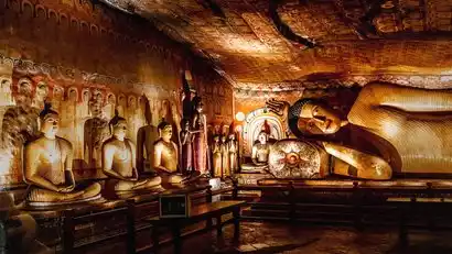 The Dambulla Caves, a UNESCO World Heritage Site, resemble a hidden treasure within a valley. Within its rocky caves, lies a rich tapestry of religious beliefs and cultural heritage spanning millennia. As you enter, a solemn and awe-inspiring atmosphere washes over you, as if you've journeyed through time and entered an ancient Buddhist sanctuary. The cave walls are covered in exquisite murals and sculptures, each shimmering with the light of history. Within, you can hear the echoes of the Buddha's ancient teachings and feel his faith and wisdom.