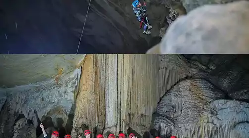 Baita Cave has been explored to have a main cave of over 6,000 meters long and a branch cave of over 3,000 meters long, covering an area of approximately 20,000 square meters. From the entrance, the instructor begins laying the rope, and then goes through a series of technical operations such as traversing, descending, traversing again, and descending again. Depending on the number of people and the condition of the team members, it takes about 4-6 hours in the cave.