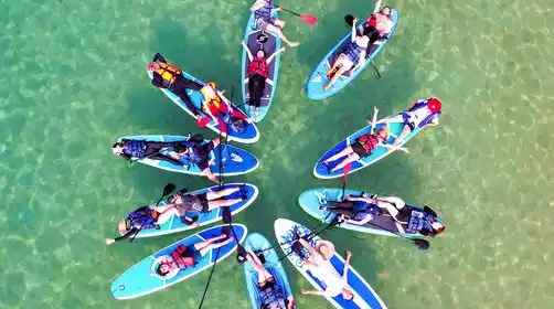 Get your paddleboard gear and the fun begins! Until sunset, set up the grill, enjoy some barbecue, and sing some songs. (You can bring your own food or order from the island farm.)