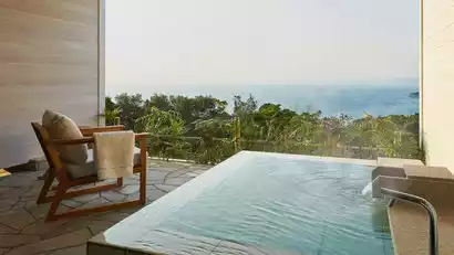Nestled between the mountains and the sea of Shirahama, the hotel offers sweeping views of the Shirahama coast. Spread across the main building and annex, the hotel boasts 74 European-style guest rooms. Ocean view rooms overlook the Pacific Ocean, offering an authentic Japanese experience of soaking in the hot springs and watching the sunset.
