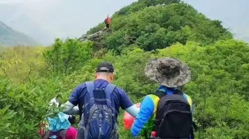 Climbing up the slopes, hiking and trekking, speeding to the top [the first peak in southern Jiangsu - Huangta Peak], showing the heroic nature of tourists.