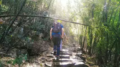 Today's hike offers a bird's-eye view of Longchi Mountain and Nanshan Bamboo Sea. The road is shaded by bamboo forests and surrounded by fresh air. Walking along the picturesque ridge, every breath is a refreshing enjoyment.