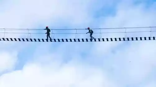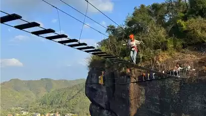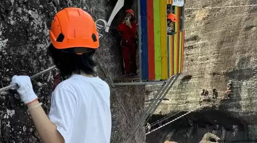 Arrive at the scenic area at 12:30 and hike to the via ferrata entrance. The tour leader distributes tickets to everyone, takes a group photo, and puts on equipment under the guidance of the instructor. After listening to the safety precautions for the via ferrata activity, everyone lines up in an orderly manner to start the climb. Please pay attention to your phone and experience the thrill of flying over the eaves and walls. (The via ferrata takes about 1.5 hours. If you don't want to do it, you can hike on the hiking trails in the scenic area.)