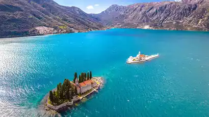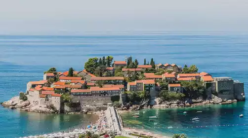 On our return journey, we'll visit the dreamy island of Sveti Stefan. Originally a 15th-century fishing village, this small island is now privately owned by a luxury hotel group. Connected to the mainland by a thin isthmus, we'll take photos from the observation deck, capturing the stunning sight of red-roofed stone houses floating above the azure sea.