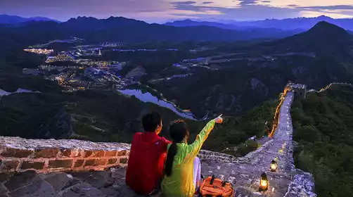 Lantern Night Tour of Simatai: Carry a lantern and journey along the Great Wall. Ride a fully enclosed cable car to the top of the wall, open only at night, and gaze down upon the town ablaze with lights. Simatai is the only section of the Great Wall in my country open for night tours. Holding your loved one's hand, holding a lantern, you ascend atop the mountains and valleys, embracing the sunset and starry sky, while overlooking the town's vibrant lights and the vibrant lights of countless homes. (The first nighttime Great Wall [Simatai Great Wall] "No hero has ever been to the Great Wall")