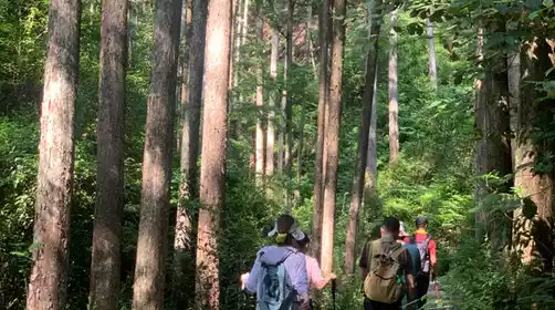 We started the 6km crossing of Muxin Valley, with a cumulative ascent of about 200 meters. The route was mainly dirt roads in the forest, with towering trees, moss all over the ground, mottled sunlight, and felled tree stumps scattered everywhere. Streams accompanied us all the way, like a mixture of the Kumano Kodo and the Ailao Mountains.