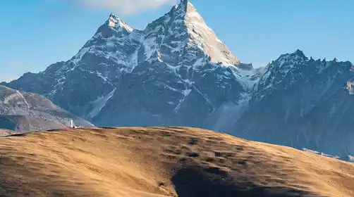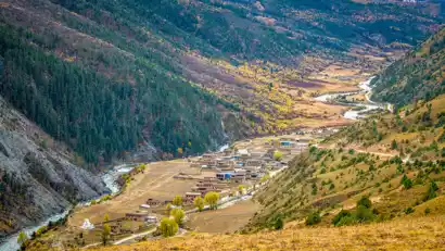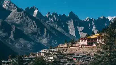 Today, we'll rise early to watch the sunrise over the Golden Mountain. After breakfast, we'll drive along the Hupi Dam to the new Lenggu Monastery. We'll then ascend along the river between Genyen and Xiaozha, weaving through the forests. The dark blue cliffs of the snow-capped mountains will appear before us. Once we emerge from the forest, the old Lenggu Monastery suddenly comes into view, facing the main peak of Genyen and backed by the Xiaoba Snow Mountain. Lenggu Monastery, dedicated to Lama Tsongkhapa, is surrounded by stone huts for practitioners, most of which are abandoned and rarely seen. Currently, there's only one monk within the monastery, but you might occasionally encounter the blue sheep that live near the monastery, creating a truly ethereal and unique experience.