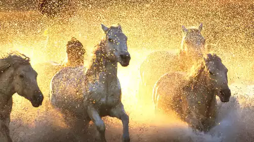As the light gradually brightened, we began to take pictures of horses stepping on the water. This is another classic must-shoot project on the Bashang Grassland. The scene of horses stepping on the water is magnificent and everyone pressed the shutter to take pictures.