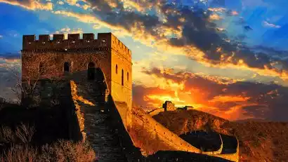 In the evening, we waited for sunset photography on the Great Wall. This is where the CCTV logo was filmed. The winding, endless Great Wall, illuminated by the autumn sunset, is breathtaking, dangerous, strange, and unique. With luck, we can capture the breathtaking "Golden Great Wall."