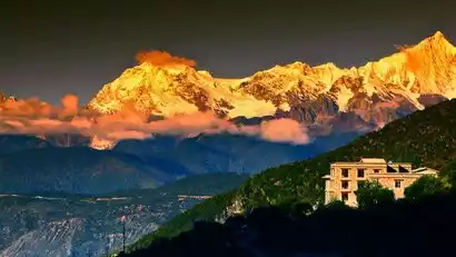 Continue on to the Wunongding Snow Mountain Observation Deck, nestled against the backdrop of Baima Snow Mountain. This location offers the widest views in Deqin, encompassing the majestic rolling hills, Feilaisi Village at its foot, and the Lancang River Valley. Next, visit the Feilaisi Observation Deck, offering a panoramic view of the Meili Thirteen Peaks. Upon arrival at the hotel, enjoy a Snow Mountain Afternoon Tea, a relaxing getaway nestled beneath the snow-capped mountains.