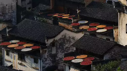 Check out the intangible cultural heritage skills, including the three types of Anhui carving, Jialu umbrellas, Anhui embroidery, sesame cake making, southern Anhui wooden oil pressing, and rice wine brewing. If you are lucky, you may even encounter dancing crane fairies and traditional Huizhou wedding performances.