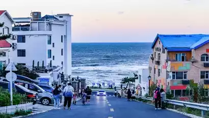 After lunch, we'll head along the coast to the International Bathing Beach. Here, you can not only enjoy the ocean view, but also find numerous unique teahouses, bookshops, and cafes nearby, allowing you to slow down and enjoy the uniquely slow pace of life. Not far from the beach, you can visit Torch 8th Street. Surrounded by the sea on three sides, it's no surprise that marine elements abound in Weihai, but charming seaside streets are particularly rare. Torch 8th Street bears a striking resemblance to a classic scene from the anime "Slam Dunk," evoking the streets of Kamakura, Japan, earning it the nickname "Weihai's Little Kamakura." Grab a cup of coffee and let your worries drift away in the sea breeze.