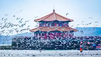 At 1:00 PM, we'll depart for Chengshantou (a 2.5-hour drive). Surrounded by the sea on three sides, Chengshantou offers a breathtaking view of vast expanses, towering cliffs, and rolling waves. Flocks of seagulls circle overhead! The vast, majestic ocean is breathtaking from every angle. Also known as the "Sound of Good Luck" and "Good Fortune Corner," this spot boasts a unique blend of good fortune and luck in the easternmost corner of China's coast. May everyone enjoy continuous good fortune in their lives!