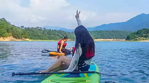 After arriving at the base, the instructor will explain kayaking knowledge and sliding techniques. After putting on life jackets, tourists can choose to paddleboard (single or double) or kayak (double) and go into the water together.