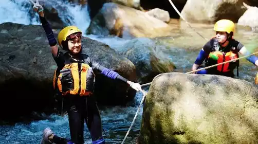 Under the guidance of the coach, put on the designated canyoning equipment (including helmet, life jacket, gloves, knee pads) and have an exciting canyoning experience (river tracing, swimming, 3M5M7M diving, rock climbing, etc.), the whole process takes about 2~3 hours.