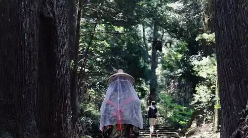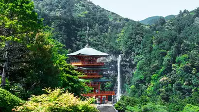 After breakfast, we'll head to the entrance of Daiunto-etsu to begin today's hike. This section of the hike is quite steep, so be prepared. We'll continue to Nachi Taisha Shrine. Along the way, we'll pass the ruins of the Jizo Teahouse, Nachi Taisha Shrine, Seiganto-ji Temple, Hiryu Falls, and Tafuku-oji before descending Daimonzaka. We'll take a bus to Ichino-oji to check in. We'll continue by bus to Potalazan-ji Temple to conclude the day. Overnight at Katsuura Hotel.