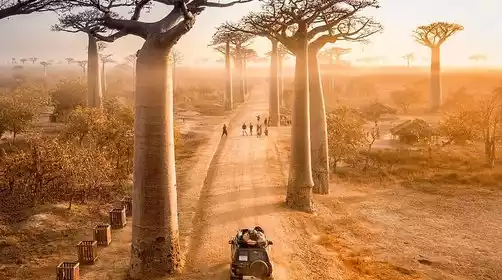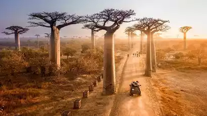 Afterwards, we'll head to the hotel for a rest. In the afternoon, we'll visit the famous Avenue of the Baobabs (L'Allée de Baobab) to enjoy the stunning sunset. This avenue is Morondava's proud calling card, boasting baobab trees that are approximately 800 years old and reach heights of up to 30 meters. This area boasts a concentration of seven distinct species, unique to the Madagascar. One section, nicknamed "Avenue of the Baobabs" for its concentration of trees and the ability to see four different species simultaneously, is considered one of the best baobab viewing spots in Madagascar and around the world.