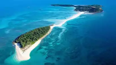 Nosy Iranja, one of the Nosy Be archipelago, consists of two separate islands connected by a white sand beach. The turquoise islands and pure white sand beach resemble two emerald gems set in the ocean, perhaps deriving their reputation as a paradise on earth. Every year, sea turtles like to lay their eggs on Iranja Beach, earning it the nickname Turtle Island.