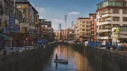Next, we filmed the "Venice" of Guangzhou. The urban village housing estates contrasted sharply with the distant "Three Towers" of Zhujiang New Town, earning this camera position the nickname "behind the bustling city." Furthermore, on clear days, the colorful exteriors of the housing estates reflected in the water, creating the illusion of the "Venice of Guangzhou."
