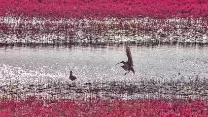 After breakfast, depart for Panjin's Red Beach National Scenic Corridor. Located at the mouth of the Liaohe River, it boasts one of the world's most well-preserved natural red beaches. Featuring the world's rare and renowned red beach, the vast coastal mudflats seamlessly blend natural and cultural landscapes, presenting a magnificent and beautiful scene.