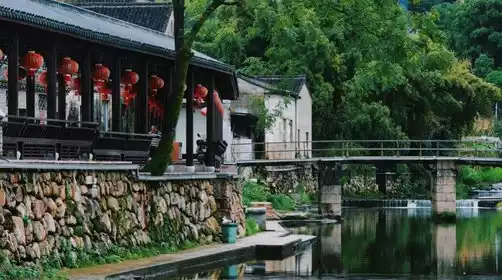 We strolled to the entrance of the ancient village, and along the way we could see green bridges, flowing water, and wobbly swings, which made us feel relaxed and happy!