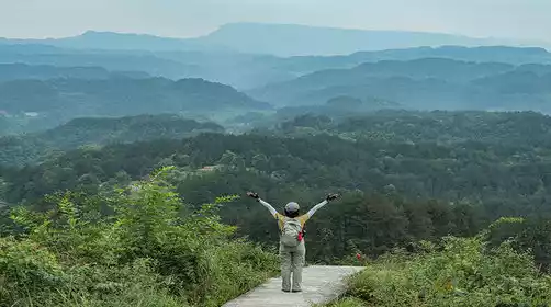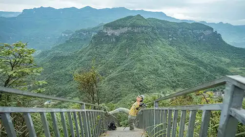 In the afternoon, we climbed up the breathtaking ladder on the mountainside and reached the top of Little Finger Mountain. We checked in the peaks and the scenery of Chongqing and Guizhou,